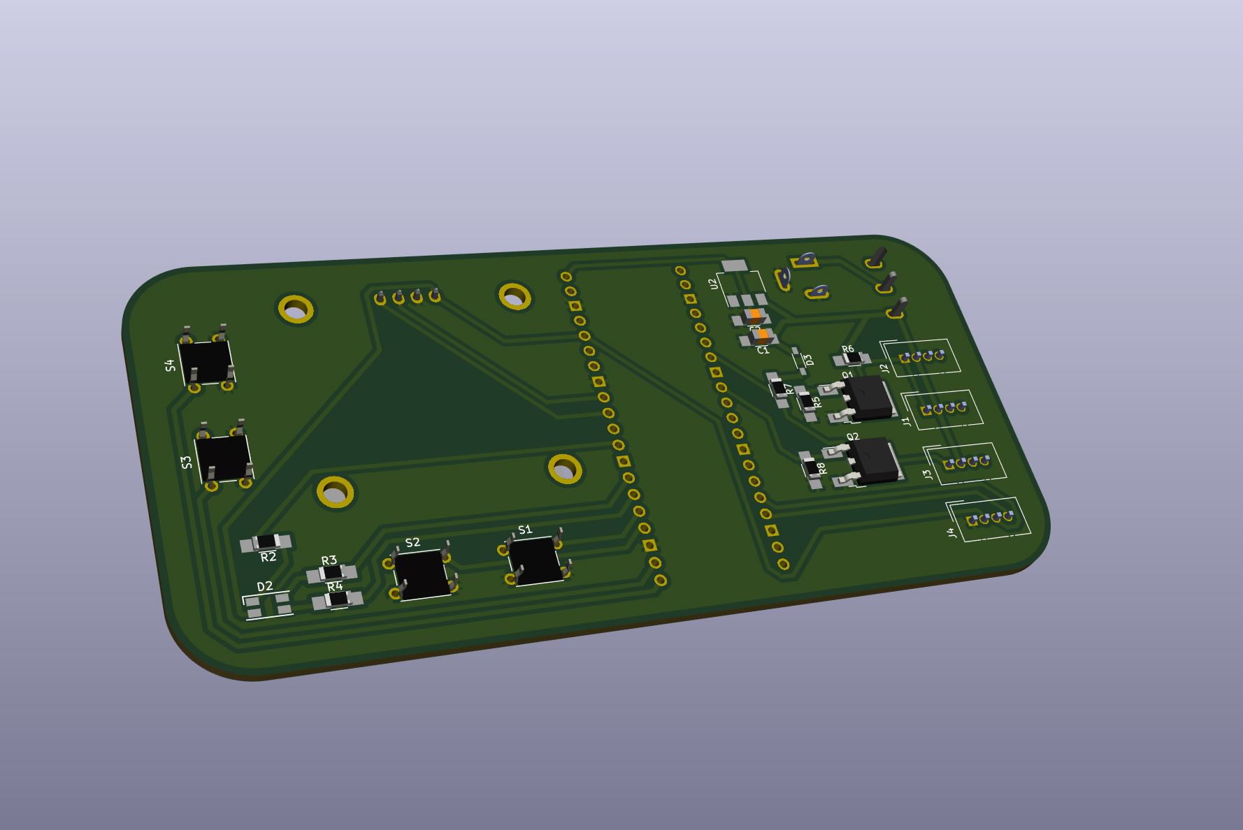 The main electronic components of the fermentor are: a Rapsberry Pico mounted on a custom electronic board, an OLED display and four buttons, a general toggle switch, a temperature and humidity sensor, a fan and two heating pads.