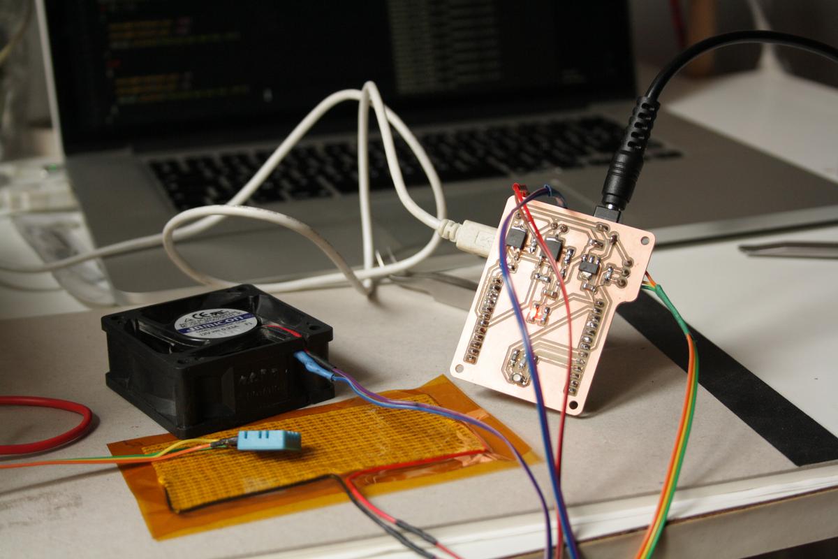 In a second phase, we installed a shelf next to our boiler which had its own room where the temperature was always around 27°C. But when we moved, we had to find another solution because our boiler was no longer in the flat. So we decided to design and build our own open-source fermenter-lab. You are more than welcome to read its documentation and create your own version.