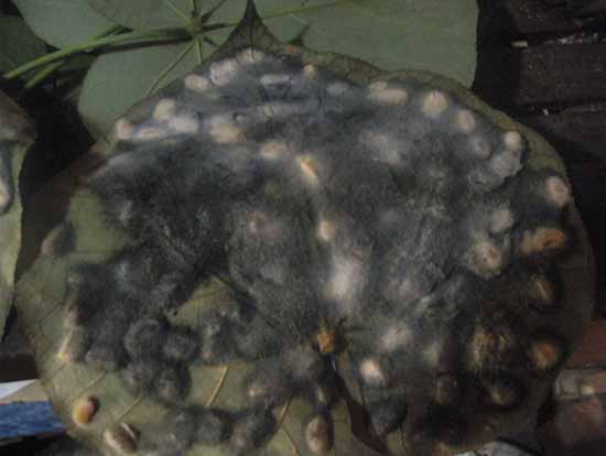 You can also overripen one of your tempeh so that it matures to sporulation (that is fruiting in mushrooms) and harvest the spores to use as a starter. Sporulation occurs after mycelial growth. In tempeh sporulation is marked by darkening color that corresponds to the abundance or microscopic black fungi. Higher oxygenation and drier conditions favour sporulation, which is why sporulation will almost always develop on tempeh near the holes in your mould. To maximise spore production, you can expose as much surface area as possible by slicing your tempeh block and leaving it in the incubator, outside the mould. When it is fully sporulated and dried, you can simply grind it and use it as a starter. Note that each generation of starter has the possibility of contamination by bacteria and weakening of the mold. Maintaining a pure culture requires a scrupulous and methodical effort. Commercial starters are manufactured in laboratories under sterile conditions and each batch is tested for low levels of unwanted bacteria.