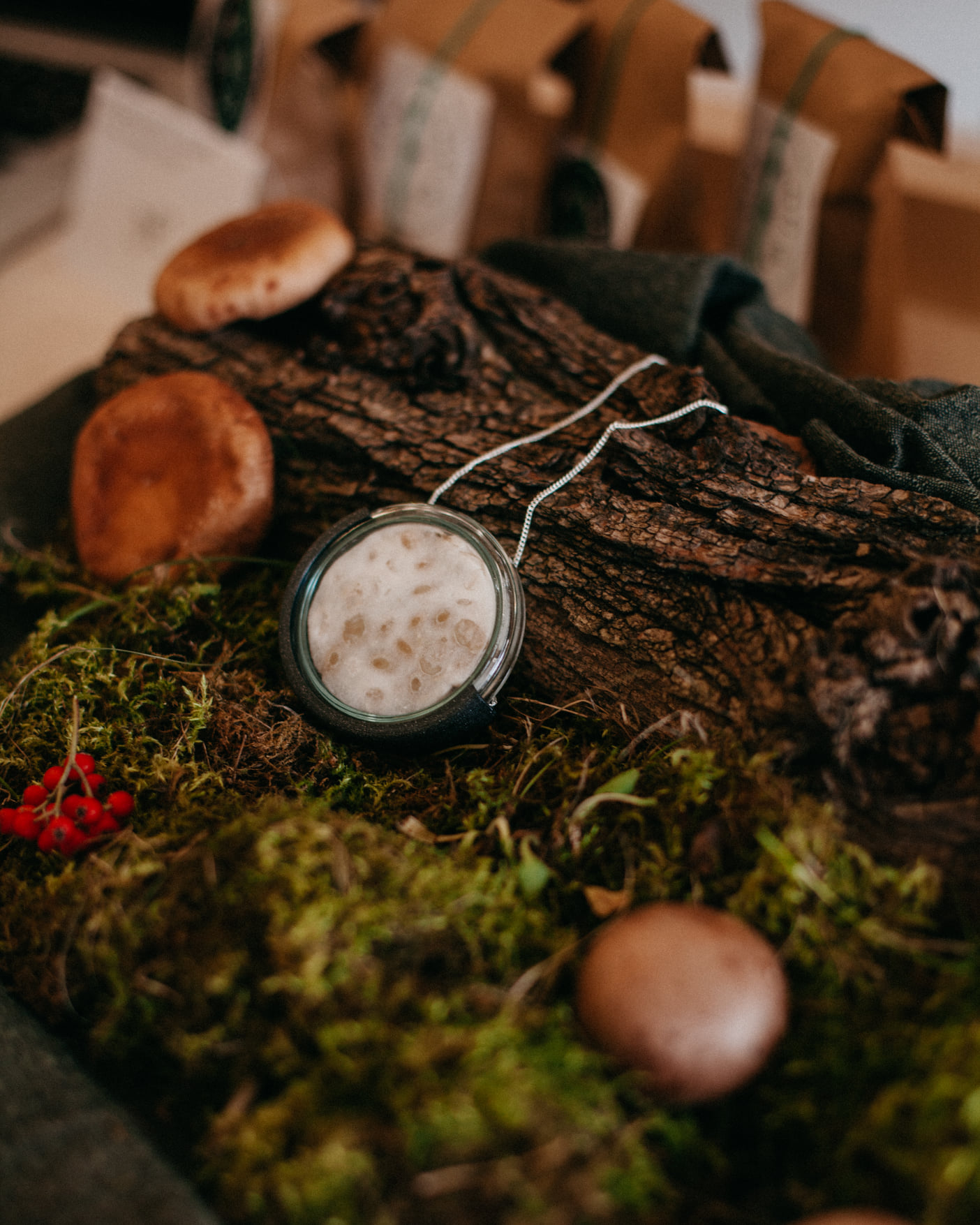 We had a stand at the fermentation micro festival All Ferments alongside other fermenters: beer and kombucha brewers, kimchi and bread makers, fermented spicy sauces lovers. We presented the necklace in a very mushroomy set made of natural elements collected in the natural park nearby.
