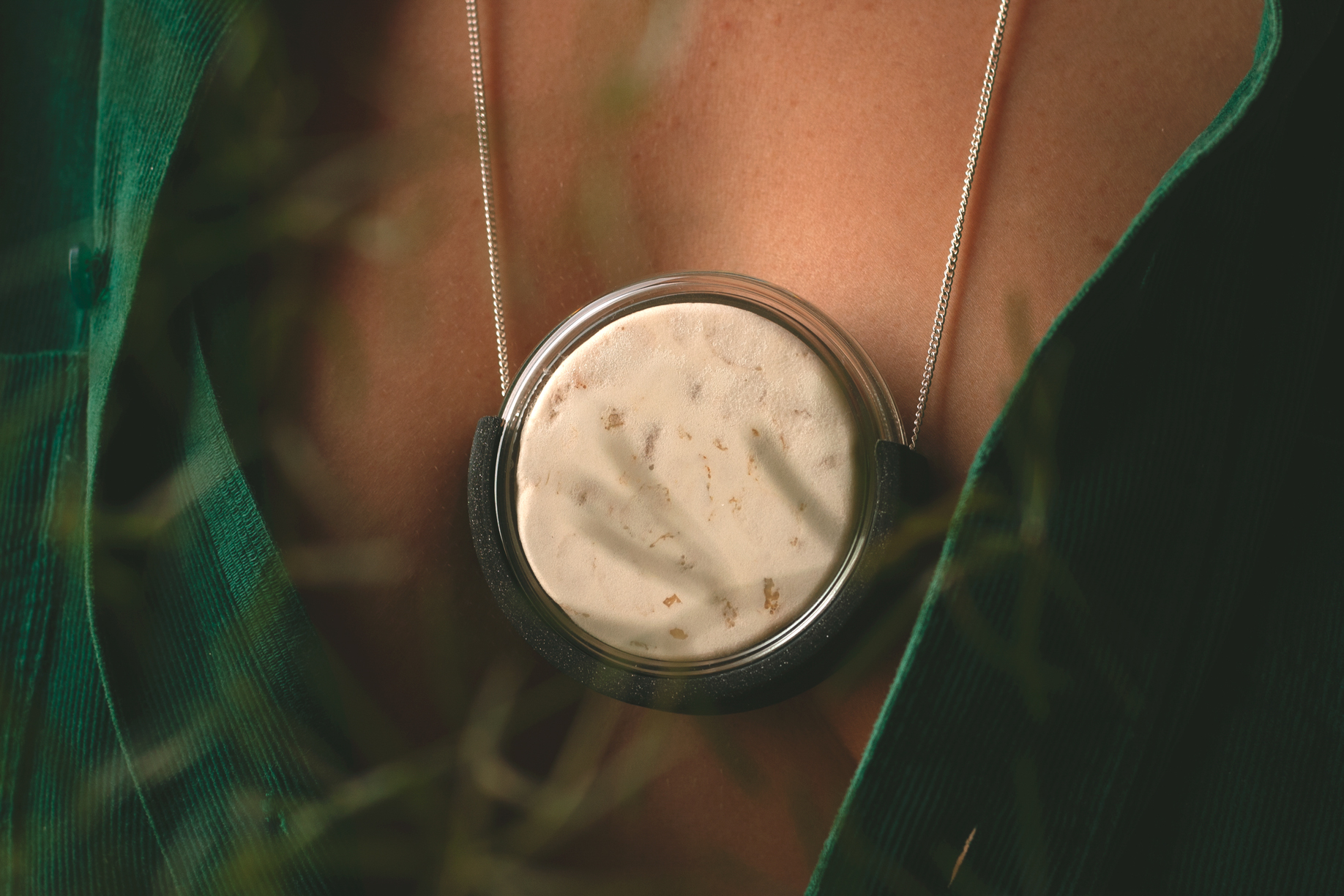 Release of our first product, after the tee-shirt, the Domingo necklace. A poetic invitation to all to start fermenting tempeh without any other device than your body. Wear it for a day or two to ferment your own plant proteins with your body heat. We make it ourselves in our workshop. It was great to see the audience getting excited about their tempeh-Tamagotchi.